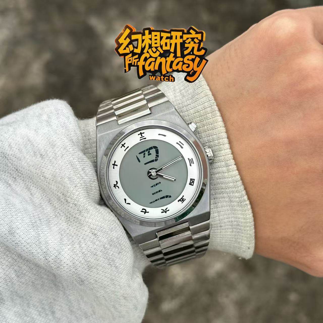 【帶你直達 Y2K 穿搭天花板!🛸】📐硬朗幾何線條,100% 還原千禧重工業風廓形🔴⚪️強烈對峙!視覺衝擊力極強,鎖定路人視線🀄️漢字符號跳動於錶盤,打破平庸計時